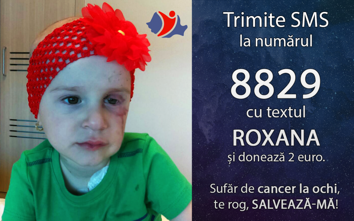 Numarul de SMS 8829 este valabil pentru ROXANA pentru perioada 15 Noiembrie 2017 – 15 Decembrie 2017, in retelele Orange, Vodafone, Telekom Romania si Digi. Suma alocata cauzei este de 2 Euro. Nu se percepe TVA pentru donatiile de pe abonament. In retelele Digi Mobil, Orange si Telekom Romania Mobile, pentru cartelele preplatite, TVA-ul a fost retinut la achizitionarea creditului. Pentru donatiile de pe cartele preplatite, in reteaua Vodafone utilizatorii nu platesc TVA.