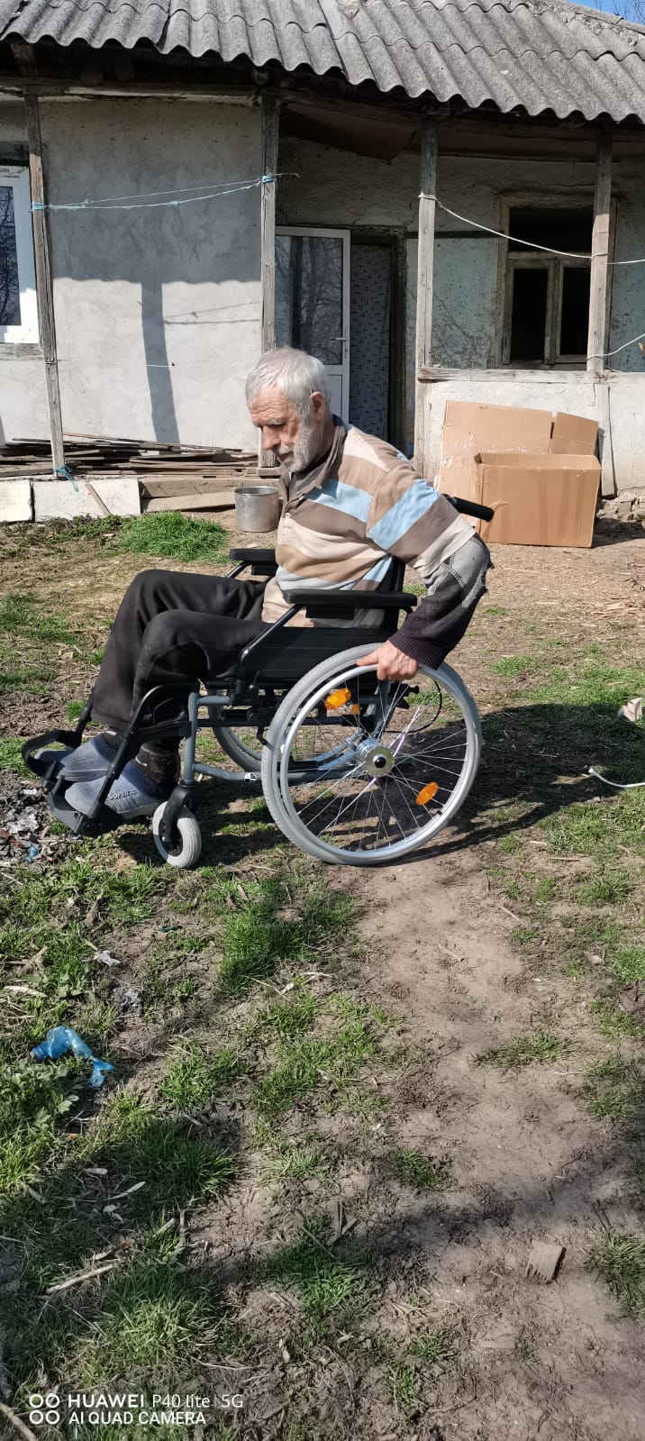 UPDATE 18.04.2023 – Domnul Vasile a primit un carucior cu rotile si un pachet din partea unui donator din Sibiu